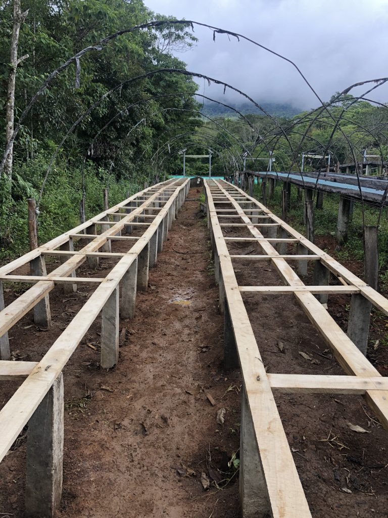These (almost) finished coffee beds will help dry the beans when the coffee harvest begins in late August.